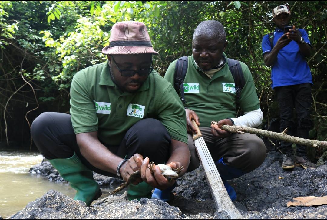 Voice of Nature (VoNat) is currently been supported by Re:Wild to engage local communities in mapping Goliath frog conservation threats and co-designing local solutions for the conservation of emblematic species in the Mount Nlonako Area, Littoral Region of Cameroon. Goliath frog (Conraua goliath) is the world’s largest frog, classified as endangered on the IUCN Red List and found only in Cameroon and Equatorial Guinea. The frog plays an invaluable role in mitigating the spread of diseases and marinating the ecosystem, but is heavily hunted for pet trade and food, besides other threats. Read More