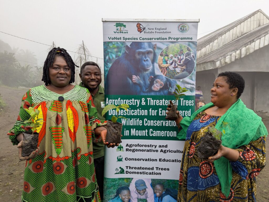 By supporting communities like Bonakanda to cultivate threatened tree species, VoNat is reducing harvesting pressure inside Mount Cameroon National Park and restoring these species on farms, home gardens, and communal lands. In doing so, VoNat is not only advancing biodiversity recovery, it is empowering communities to manage natural resources sustainably while strengthening intergenerational knowledge and stewardship.